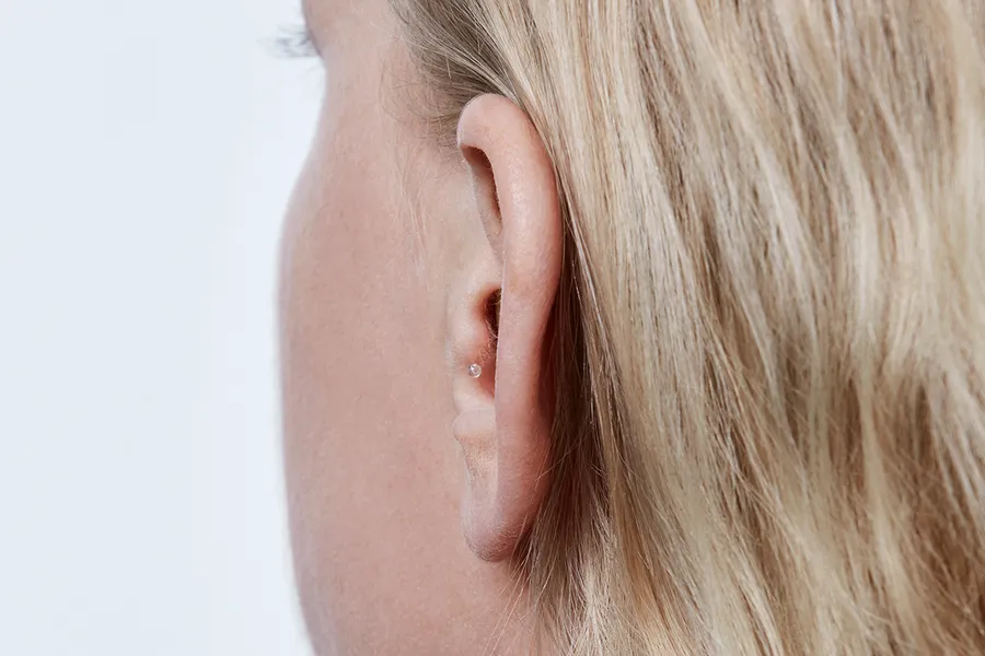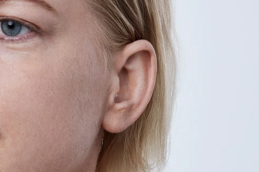 Tamamen Kanal İçi (CIC) işitme cihazı, ses seviyesi ve programları kontrol edebilmenize olanak sağlayan isteğe bağlı bir basma düğmesi sunar.